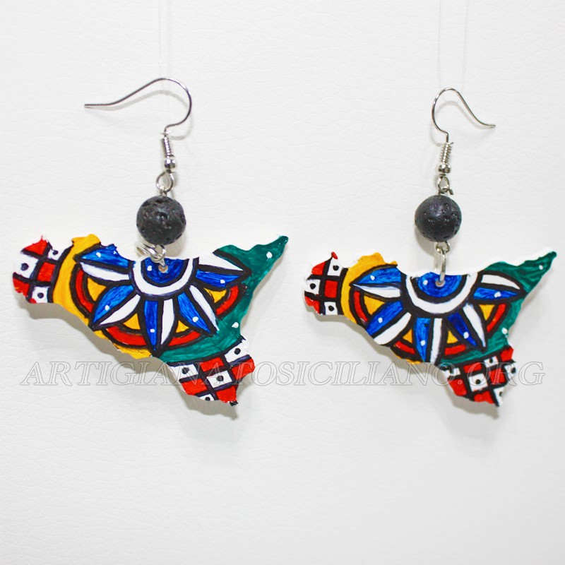 Orecchini in fibra di legno, dipinti a mano e pietre dell'Etna
