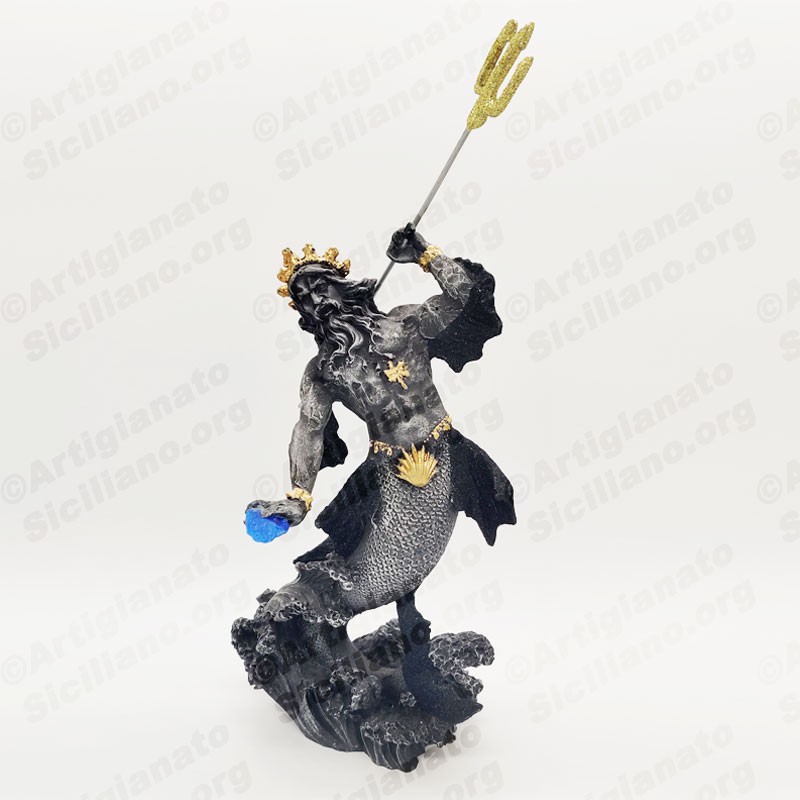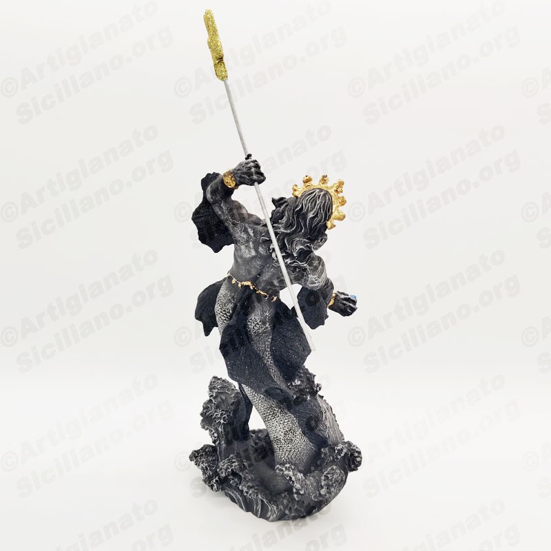 Statua di Poseidone, con tridente. Finiture dorate realizzate a mano.