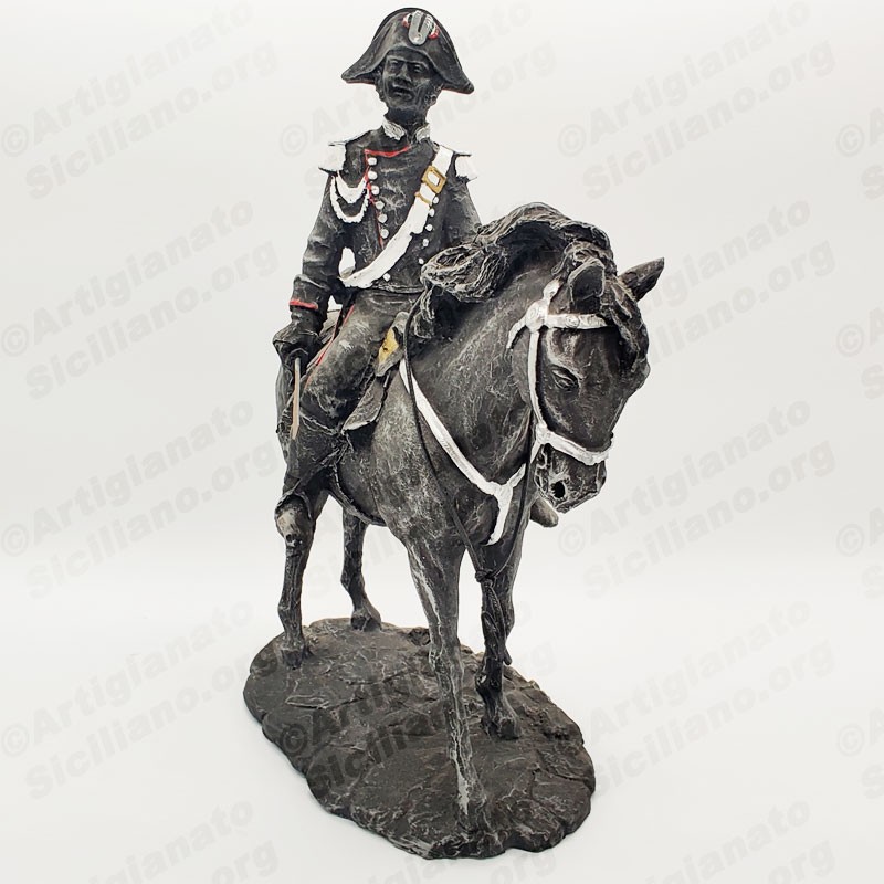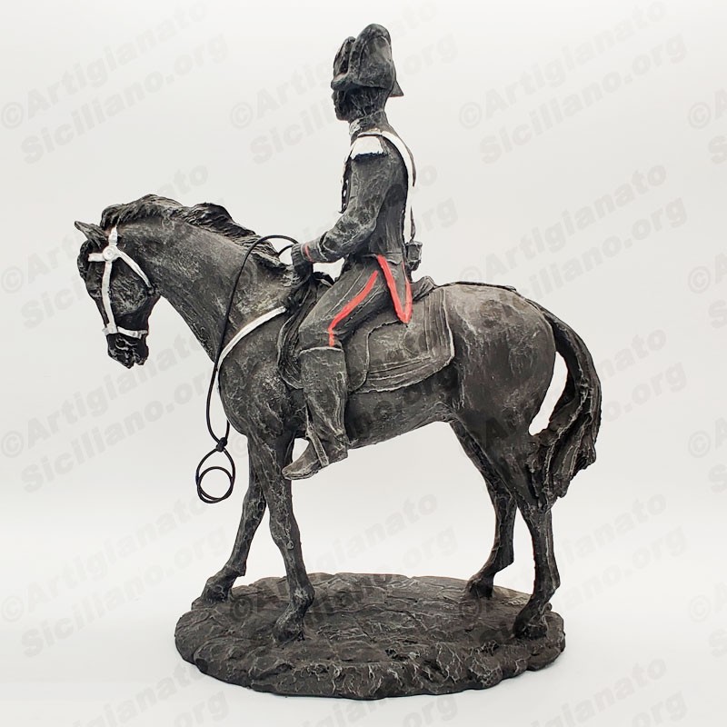 Carabiniere grande a cavallo realizzato in lava dell'Etna.